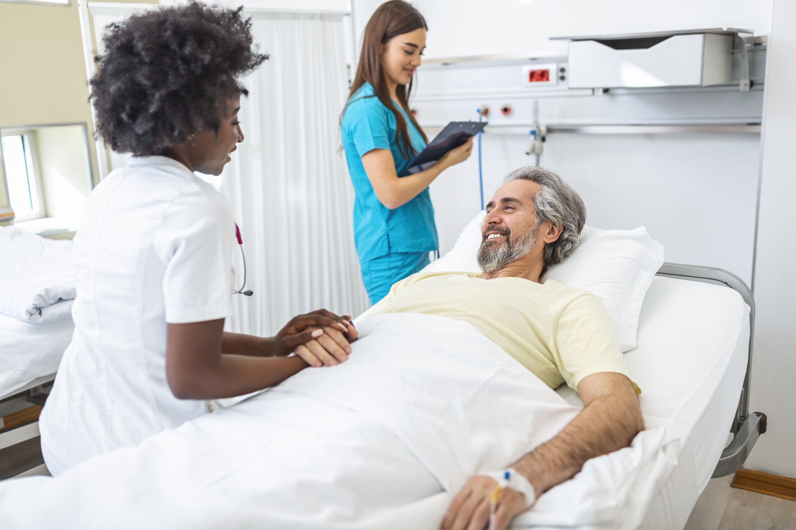 A semi-private hospital room